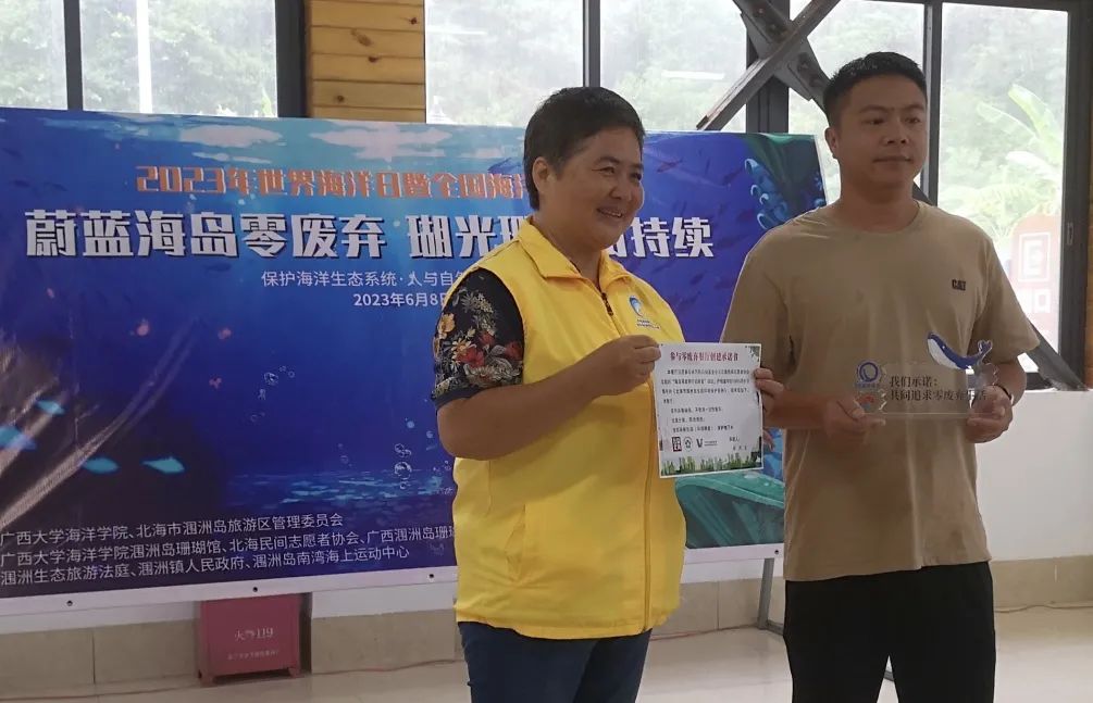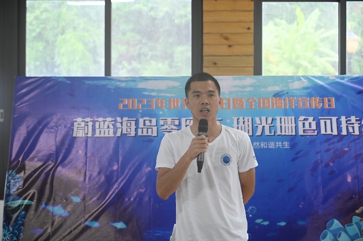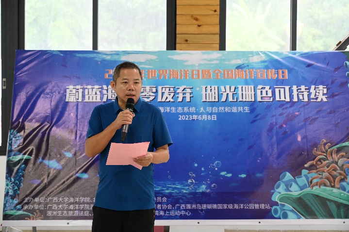 6月8日上午,以“蔚蓝海岛零废弃 瑚光珊色可持续”为主题的2023年“世界海洋日暨全国海洋宣传日”主题活动在太阳集团tyc9728涠洲岛珊瑚馆举办。本次活动由太阳集团tyc9728、北海市涠洲岛旅游区管理委员会、北海市海洋局主办。太阳集团tyc9728涠洲岛珊瑚馆、北海民间志愿者协会、广西涠洲岛珊瑚礁国家级海洋公园管理站、涠洲生态旅游法庭、涠洲镇人民政府、涠洲岛南湾海上运动中心联合承办。活动还得到了北海市公安局涠洲岛分局、涠洲镇渔牧站、北海市涠洲岛新绎海洋运动有限公司、北海探索潜水运动基地有限公司、深呼吸潜水运动有限公司、涠洲岛民宿客栈与精品酒店协会等支持。