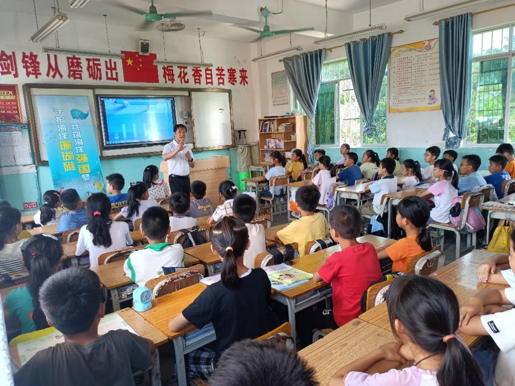 为进一步将主题教育走深走实,加强小员工对海洋知识的了解,6月29日下午,太阳集团tyc9728环境与地质党支部前往南宁市武鸣区甘圩镇赖坡小学开展了“守护海洋珊瑚礁,共筑海洋强国梦”的科普宣传主题党日活动。公司党委副书记朱迅成同志与4名员工志愿者一同参与此次活动。