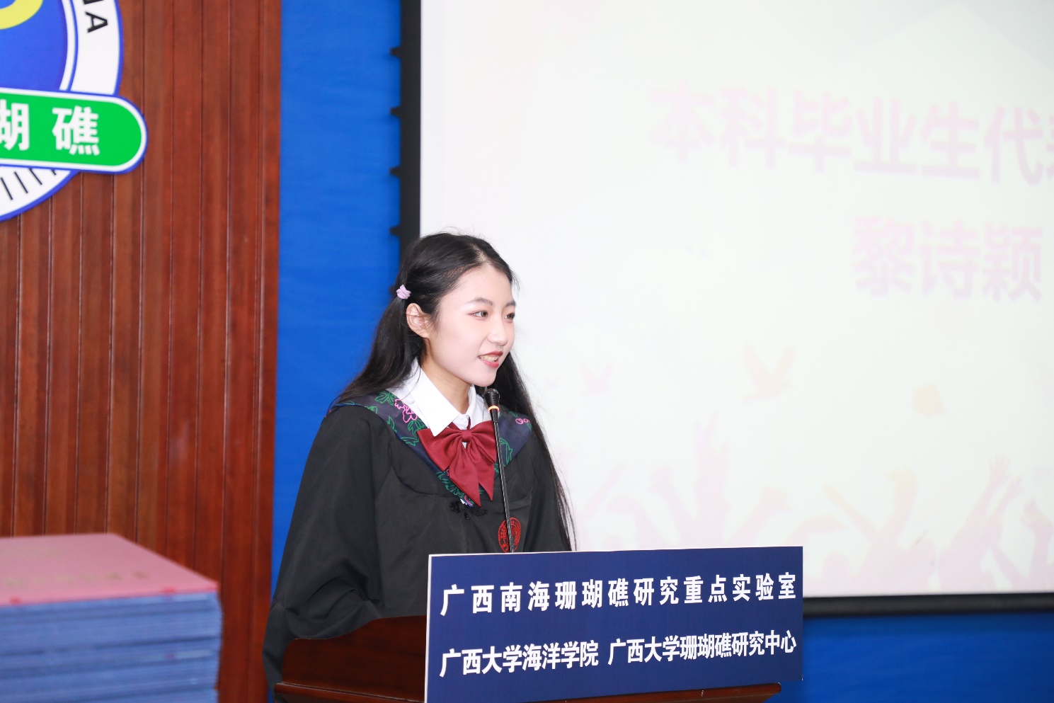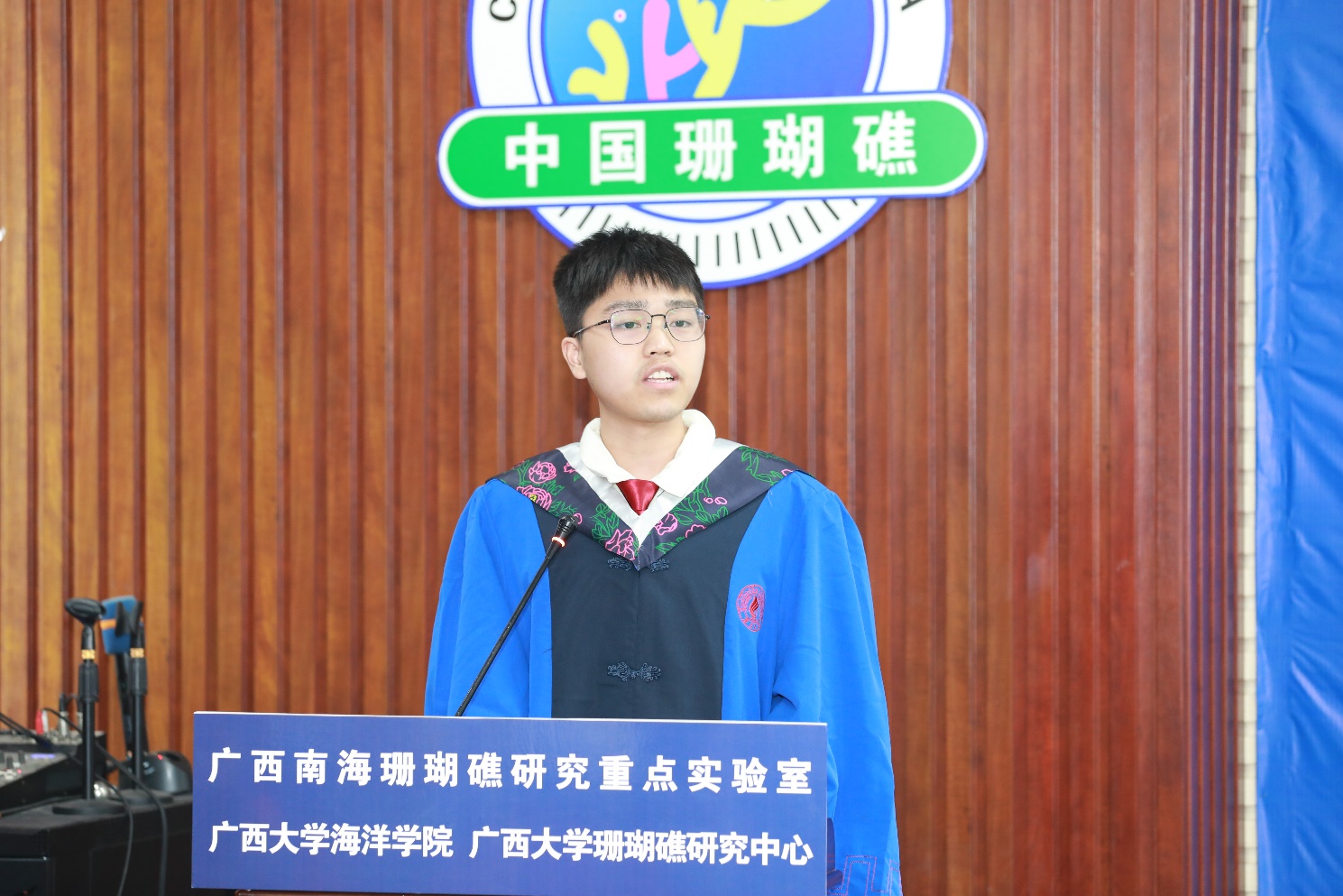 海洋科学2022级本科生毕业生代表、2023届太阳集团tyc9728优秀毕业生获得者黎诗颖对公司提供优秀的学习环境和成长平台表示感谢,回顾了大学四年在专业知识、组织协调能力、团队协作能力和沟通表达能力等的成长和收获,对辛勤耕耘的老师、家人、朋友、同学表示感谢,对未来继续实现自己的梦想而努力奋斗。海洋科学2023届硕士毕业生代表梁日升作为太阳集团tyc9728建设的见证人,讲述了2016年本科入学以来他眼中的公司、在公司的成长之路,他以导师余克服教授赠予的“科学研究必须要脚踏实地,欲速不达”与同学们共勉,并分享了在求学、科研路上的点滴感悟,以此相互激励。教师代表、海洋科学2019级2班班主任苏宏飞老师以他颇具特色的口音向同学们致以衷心的祝福,并对同学们提出了几点建议与期待:勇于改变,主动明确目标向好前进;甘于奉献,勇于牺牲小我成就大家;守于心田,坚守不忘初心无愧时代。