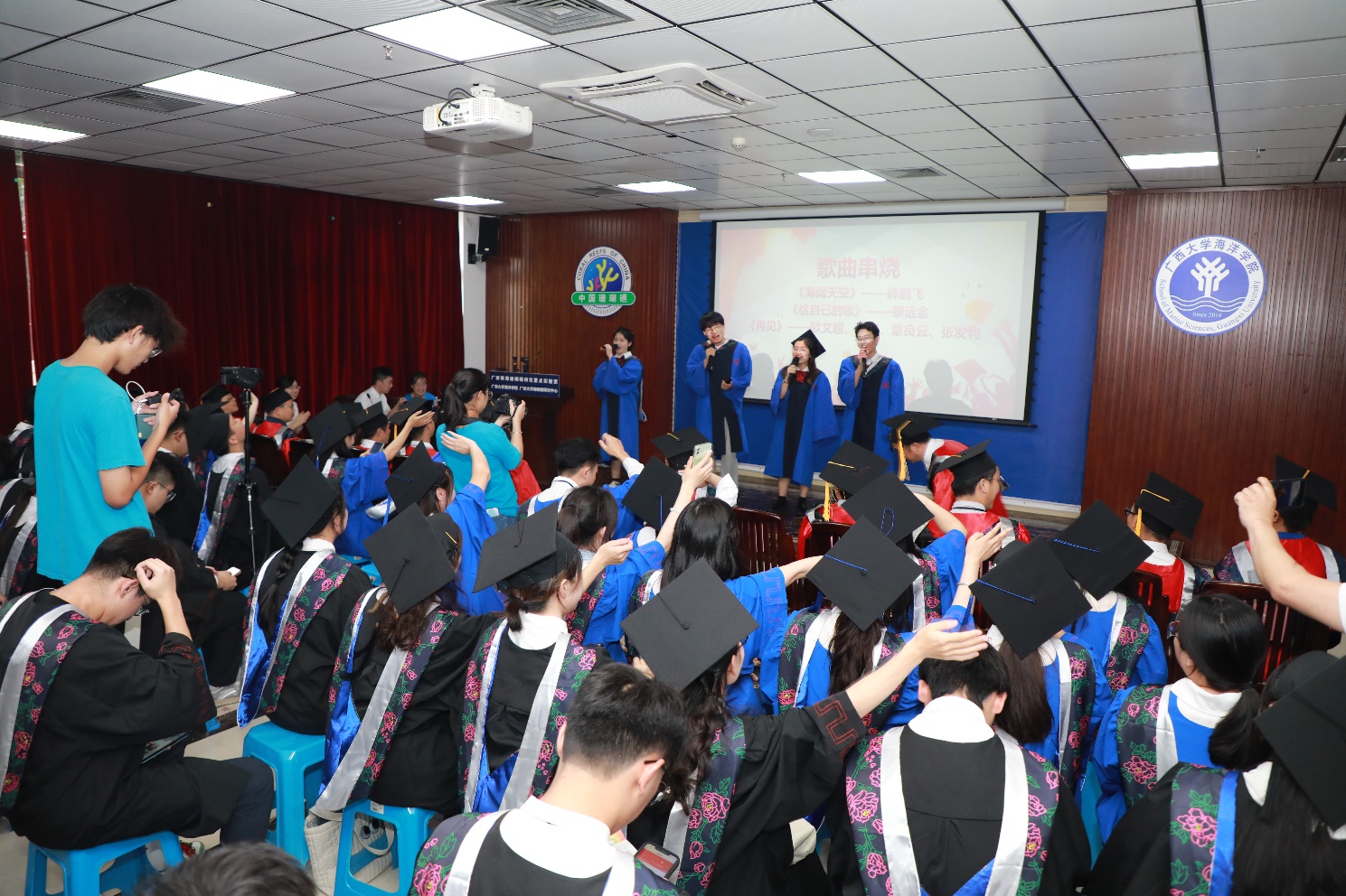 最后,伴随着薛鹏飞、黎远金、欧文超、门征、覃良云、张发利等同学携手共唱的串烧歌曲中2023届毕业典礼落下帷幕。学有所成的海院学子们,将带着老师们的殷切祝福和对未来的美好期盼,在人生路上继续奋勇攀登。(团委员工会、周剑/文 梁日升、邱书维、周剑/图 周剑/编辑 朱迅成/审核)