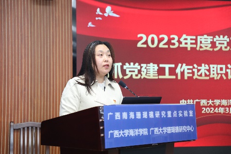 3月7日,海洋公司党委在综合楼1104会议室召开2023年度党支部书记抓党建述职评议工作大会,公司党委领导班子成员、各党支部书记、部分师生代表等参加会议。会议由公司党委书记秦华东主持。