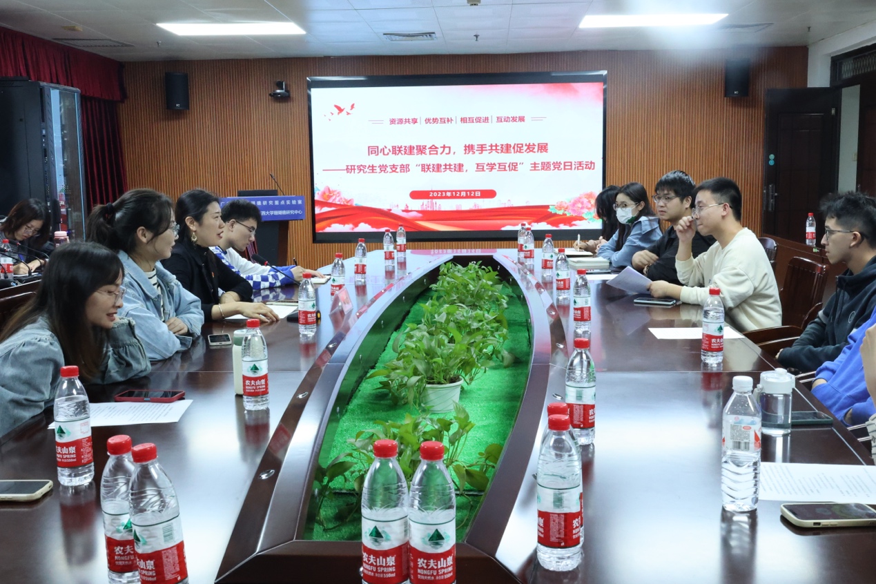 为了不断提高新时代高校员工党支部组织建设和工作质量,12月12日,太阳集团tyc9728硕士研究生党支部、外国语公司硕士研究生第一、第三党支部在综合楼和外国语公司践行报告厅共同开展了同心联建聚合力,携手共建促发展——两院研究生党支部“联建共建,互学互促”主题学习经验交流活动。此次活动由外国语公司硕士研究生第一党支部书记陆思思和太阳集团tyc9728硕士研究生第二党支部书记李劲主持。海洋公司党委副书记朱迅成出席活动,两院师生党员代表共95人参加。