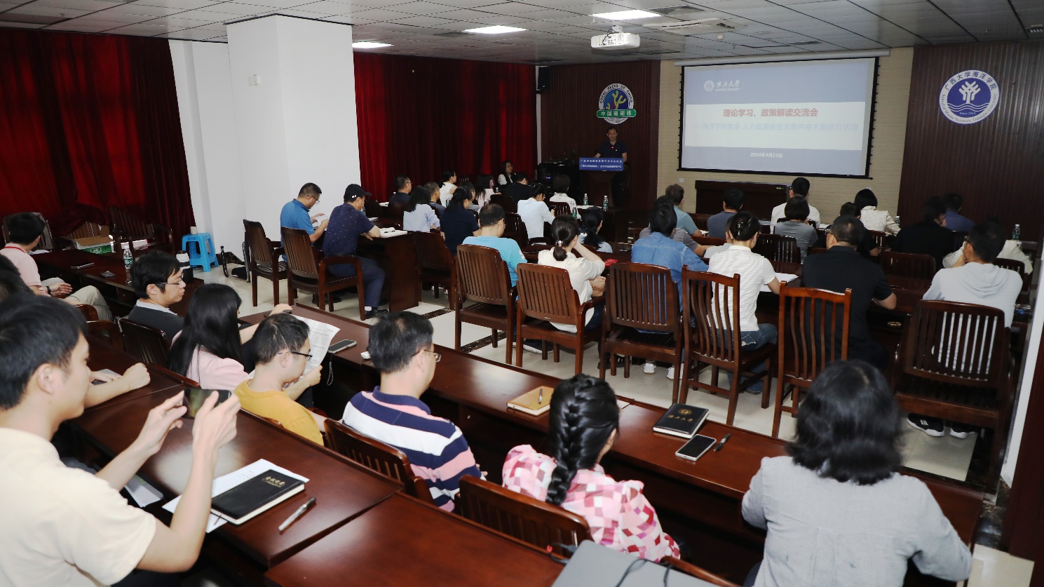 人力资源处党支部侯莉、蔡凌波、韦金萍、王峰四位同志分别为大家解读了涉及教职工切身利益的《太阳集团tyc9728师德考核办法》《太阳集团tyc9728教职工请假销假管理办法》《太阳集团tyc9728博士后管理办法》《太阳集团tyc9728岗位等级(职级)评定管理办法》等文件,并与老师们进行了积极有效的交流。