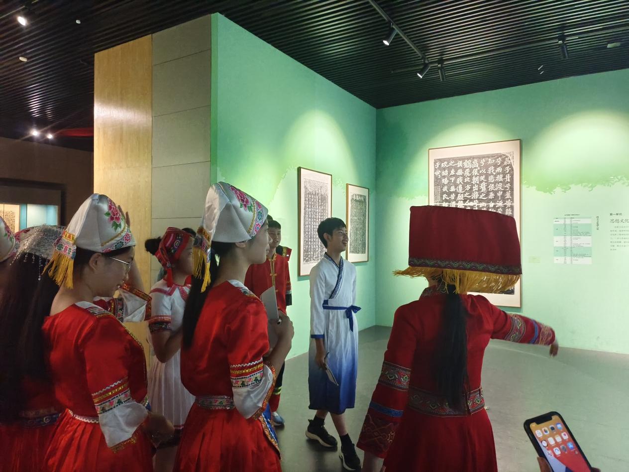 在广西民族博物馆《铸牢中华民族共同体意识历史》文化展厅里,大家参观了“共辟辽阔疆域”、“共书悠久历史”、“共创灿烂文化”、“共育伟大民族精神”四大主题板块的内容。壮族古壮字歌本、京族字经书、毛南族土俗字经书……各民族的文字古籍,静静陈列在展柜中,散发出厚重的历史韵味。这些翔实的文献资料和生动的多媒体展示,全面呈现了各民族在漫长的历史进程中交往、交流、交融,以及各民族群众共同繁荣发展的壮丽画卷。大家纷纷表示,从古老的民间传说到悠扬的民族音乐,从精美的传统服饰到独具特色的手工艺品,深深感受到多元文化的交融与共生,领略广西各民族独特的文化魅力。