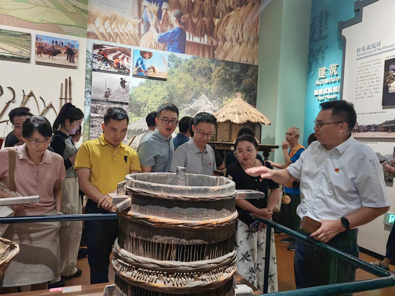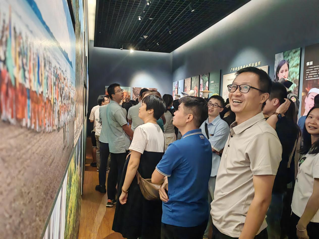 除了参观《铸牢中华民族共同体意识历史》文化展厅,大家还参观了《五彩八桂——广西民族文化陈列》展厅,从“霓裳羽衣”到“匠心神韵”,再到“和谐乐章”,每一步都让人感受到广西民族文化独有的韵味。通过这一系列的民族文化参观学习,进一步增强铸牢中华民族共同体意识的思想自觉和行动自觉。
