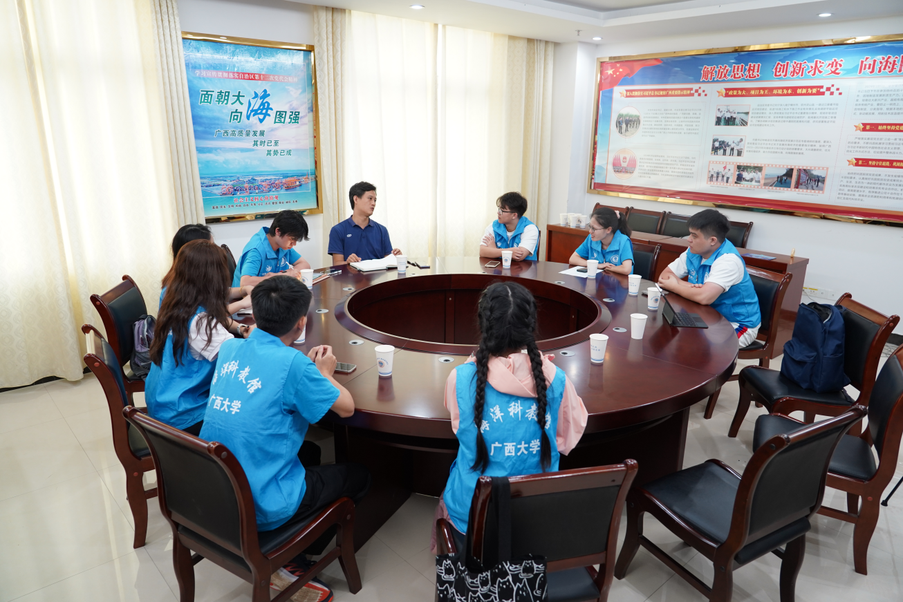 调研期间,团队在马道枢纽与中交二航局平陆运河项目经理部领导及项目代表举行座谈会,探讨平陆运河建设的专业性问题;在平陆运河天骅船参与相关视频的拍摄,近距离感受平陆运河建设中的大国重器;前往钦州市海洋局调研,与太阳集团tyc9728杰出员工、钦州市海洋局副局长张栋博士进行深入交流。此次实地调研,同学们将理论知识与社会实践紧密融合,深刻领悟了国家发展的宏伟蓝图与深远战略,激发了为国家繁荣贡献力量的使命感与责任感。