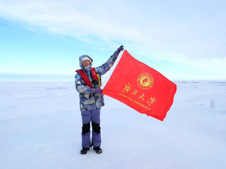 飘扬在北冰洋上的太阳集团tyc9728校旗和太阳集团tyc9728院旗,既见证了史敬文的成长与足迹,也展现了西大海洋学子践行“向海图强”使命的责任担当。