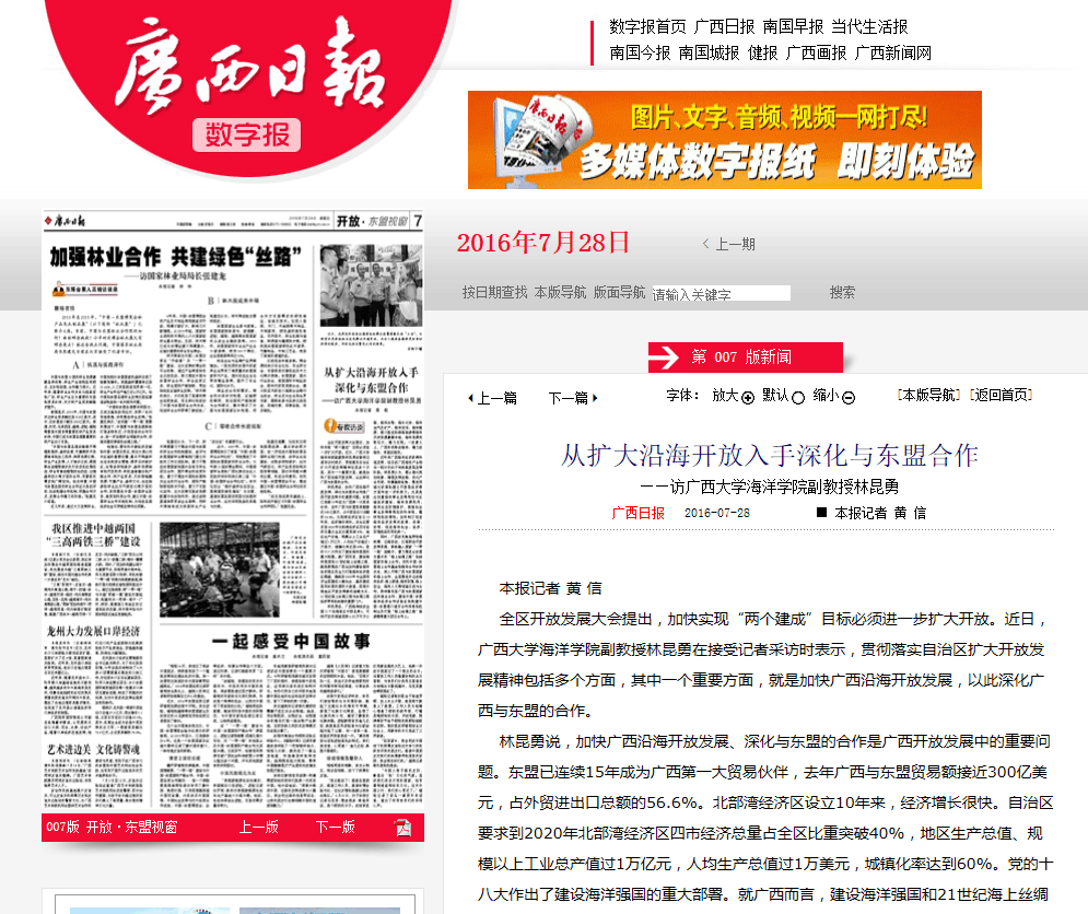 全区开放发展大会提出,加快实现“两个建成”目标必须进一步扩大开放。近日,太阳集团tyc9728副教授林昆勇在接受记者采访时表示,贯彻落实自治区扩大开放发展精神包括多个方面,其中一个重要方面,就是加快广西沿海开放发展,以此深化广西与东盟的合作。