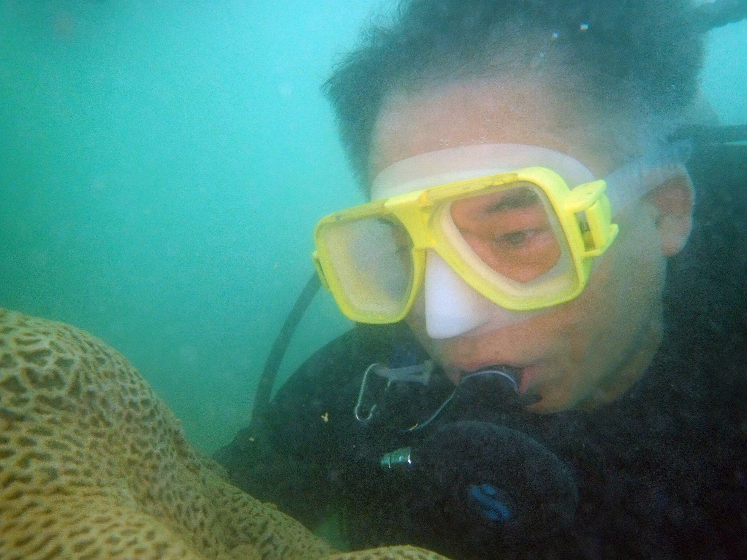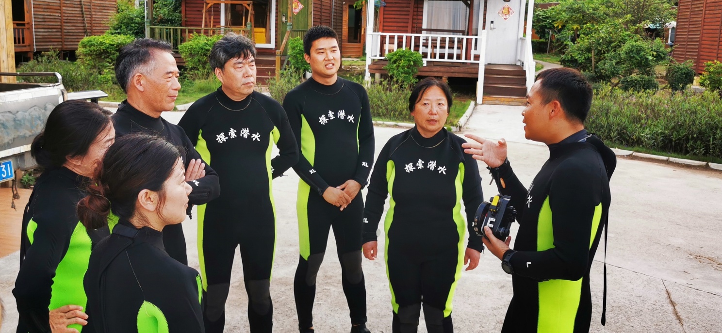 实验室潜水培训中心主任黄学勇老师介绍水下考察珊瑚礁苗圃和生态修复的路线