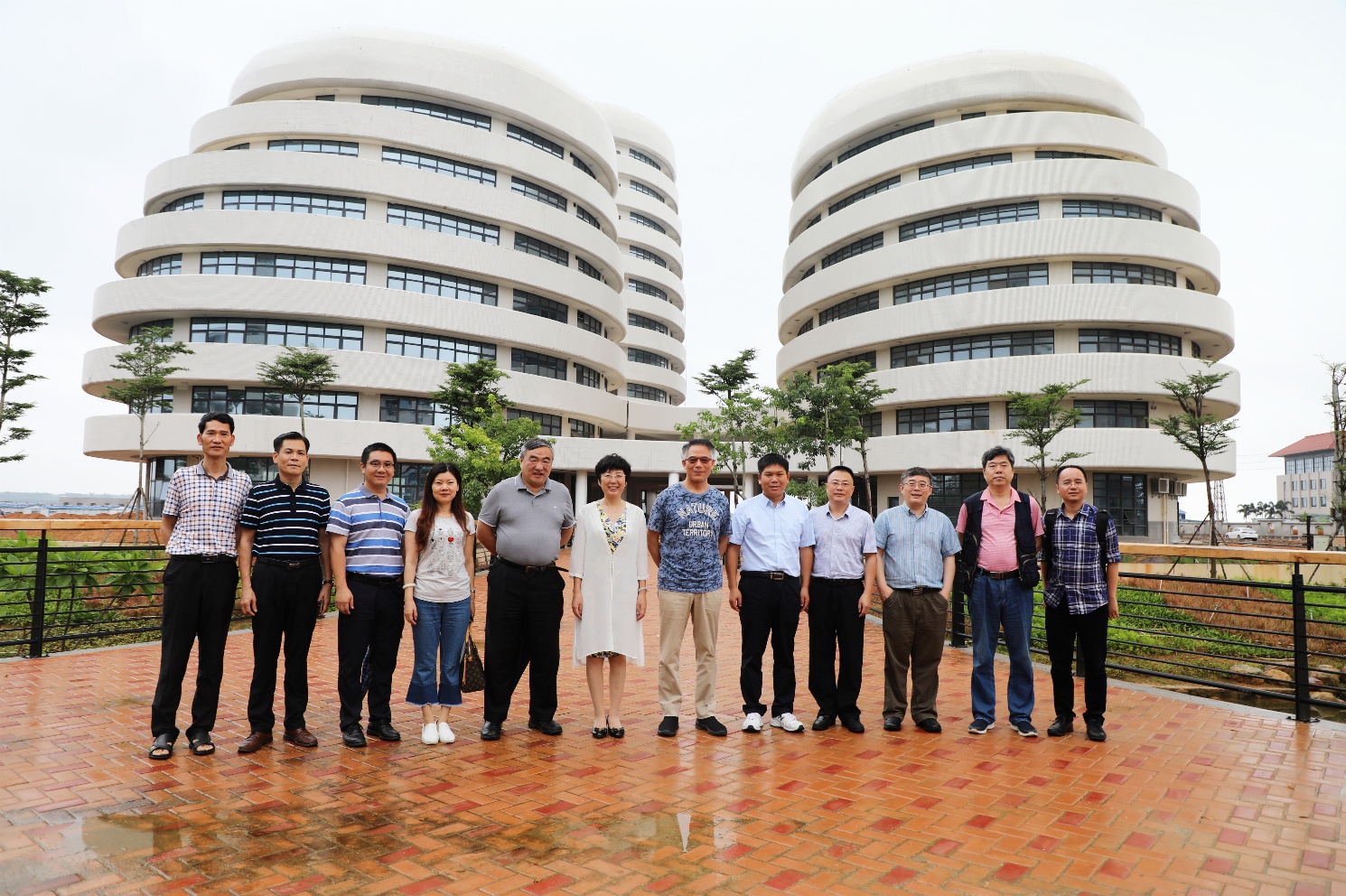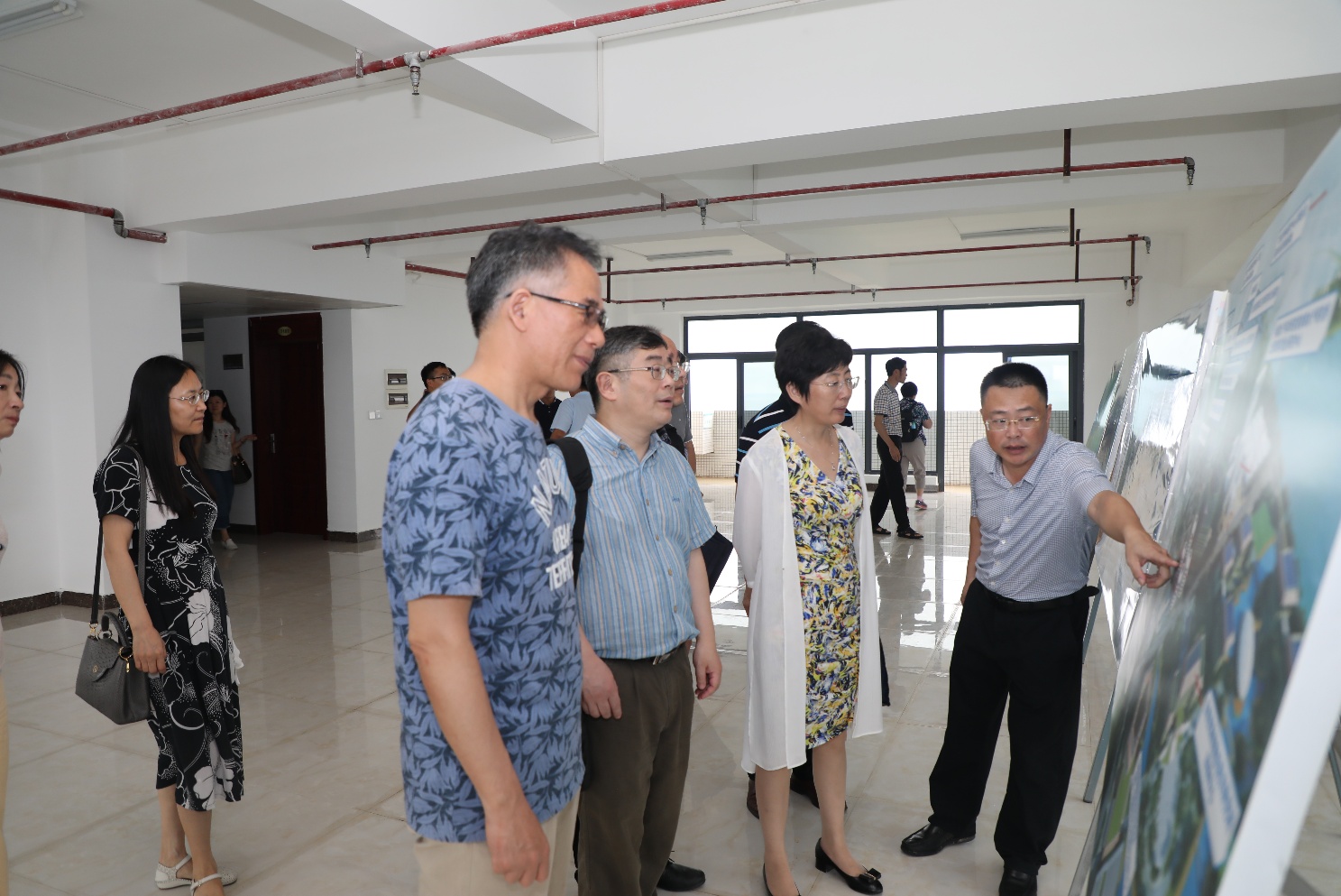 考察广西南海珊瑚礁研究重点实验室的临海实验基地建设情况(左侧大楼为实验室的临海基地)