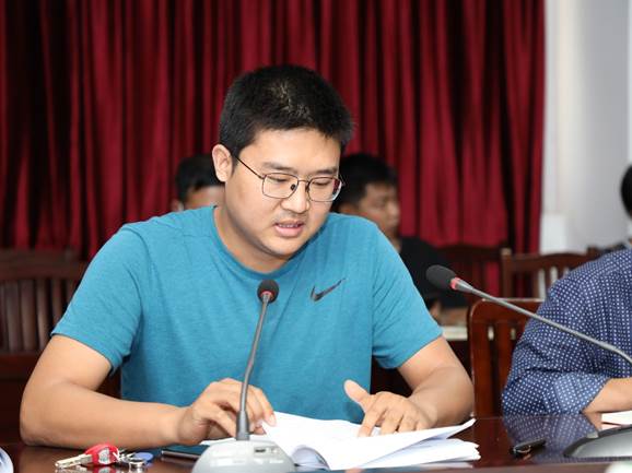 经理助理梁甲元汇报2019—2020学年公司研究生教育的亮点与存在问题。汇报指出:公司研究生教育的主要亮点包括研究生就业率、毕业研究生科研成果、研究生实践基地建设与培养、南海西沙群岛科学考察。对公司后续将提高研究生招生指标以满足各项科研项目运作需要提出了初步方案。