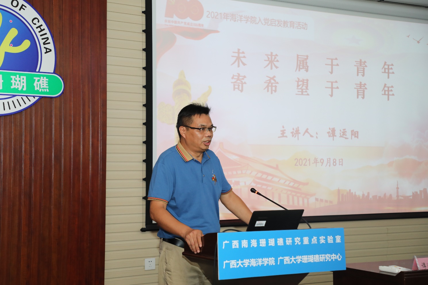 在新生入党启发教育大会上,谭运阳书记向全体新生作了《未来属于青年 寄希望于青年》为主题的专题党课。谭书记首先解读习近平总书记在庆祝中国共产党成立100周年大会上发出号召,结合实际分析习近平总书记重要讲话的重要性。从回首过去、立足当下、展望未来的层面讲述了不同时代的青年楷模在中国共产党发展历史进程中起到的作用。进而他分析了中国共产党为什么能,中国特色社会主义为什么好,归根到底是因为马克思主义行。最后他提出要励志强国有我,践行使命担当。老员工要让青春在党旗下闪光,全力践行“强国有我”。作为太阳集团tyc9728的学子,应如何树立投身建设“海洋强国”的目标,让信仰点亮人生,更好地把自己的青春燃烧在祖国大地上。