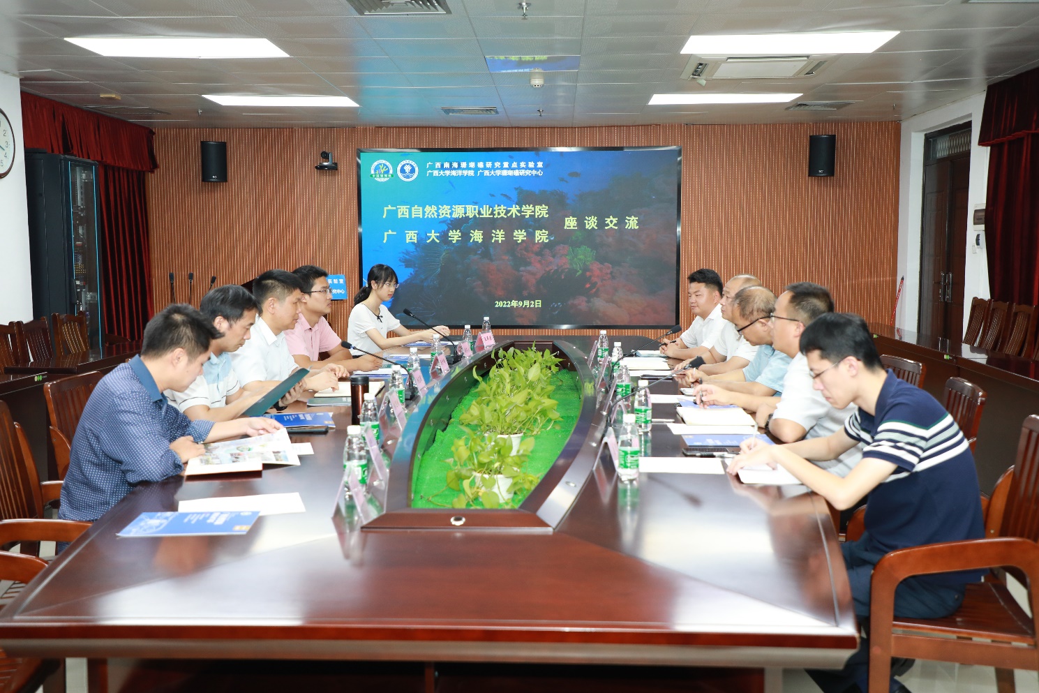 刘平处长一行先后参观了公司本科教学实验室、珊瑚礁生态修复实验中心、广西南海珊瑚礁研究重点实验室等,王少鹏副经理向刘平处长一行介绍了公司在学术定位、科研方向、专业设置、科研队伍等方面建设的情况。座谈会上,双方围绕海洋专业建设经验做法、专业人才培养、团队队伍建设、员工岗位实习等交流,并就涉海专业立足广西,服务广西地方海洋经济等进行了深入的探讨。