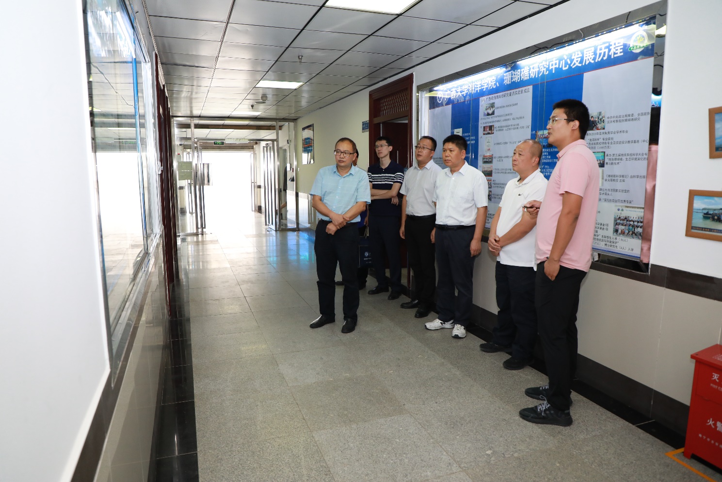 广西自然资源职业技术公司党政办公室副主任(主持工作)文斌、自然资源工程系主任王根伟、自然资源调查与规划研究院经理阮明、党政办公室刘浩,海洋公司党委副书记朱迅成、广西南海珊瑚礁研究重点实验室秘书长黄荣永、经理助理梁甲元、办公室主任李周佳、广西南海珊瑚礁研究重点实验室秘书王浠源等陪同考察交流。(王浠源、李周佳/文 李周佳/图 周剑/编辑 王少鹏/审阅)