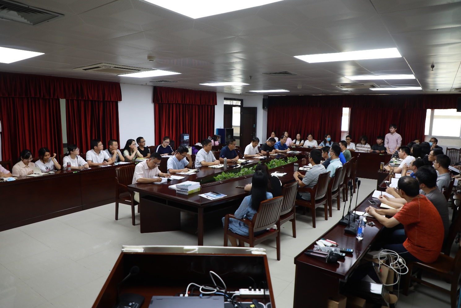 党委书记谭运阳做总结发言。他表示,全院教职工要以院为荣,拧成一股绳,团结协作投入公司建设中。谭运阳书记对公司教职工在暑假期间开展本科教学评估报告编撰、撰写教改论文、员工就业及进修等工作给予了肯定;强调了疫情防控常态化的重要性;指出要在吃透吃准相关政策的基础上对教学成果奖进一步对标对表,明确工作思路,凝练申报报告,并立足立德树人与人才培养,充分体现创新意识和海洋学科前沿理念;提出高层次人才引进对公司综合发展的必要性;就本科学业规划引导对就业、深造的重要性提出了要求。