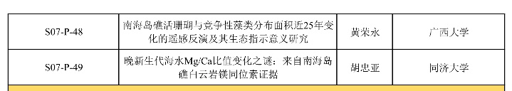 “南海珊瑚礁”专题口头报告日程