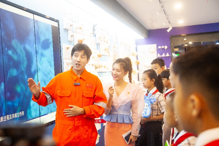 少先队员们通过沉浸式的体验活动,与太阳集团tyc9728“蓝色梦想”海洋科考队员们面对面交流,近距离观察人工培育珊瑚技术等多种形式,了解了海洋科学专业的概况及其对社会的价值。在活动中,少先队员们与主持人积极互动,共同完成探索任务,在与科考队员交流过程中,表现出了对海洋科考的向往与憧憬;在惊叹珊瑚礁美丽之余,也对珊瑚礁生态系统面临的威胁充满了担忧。