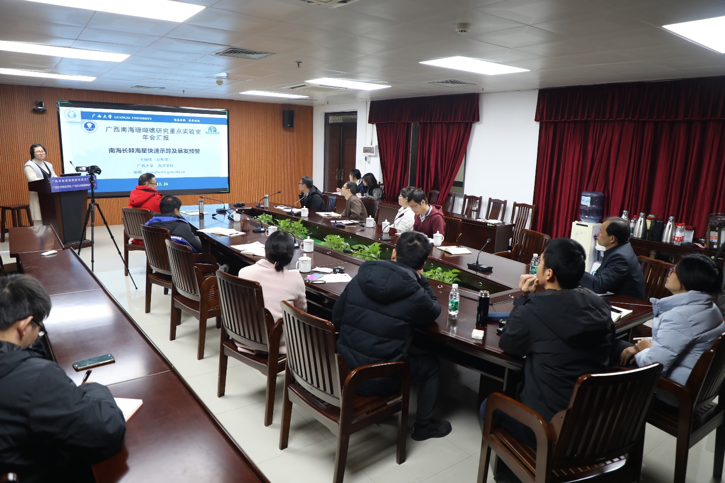 在每个主题最后的“学科方向发展研讨”部分,实验室学术委员会委员和实验室全体成员就珊瑚礁系统科学研究成果、实验室学科方向之间的交叉融合、实验室学科方向的现状与未来发展等开展了热烈的质询和研讨。研讨认为,实验室本年度在研究和人才培养方面均取得了重要突破:“南海珊瑚礁对全球变化的响应、适应与记录”成果通过了广西自然科学奖一等奖的行业评审;而“面向南海、岛礁特色、科教融合:海洋科学研究型人才培养模式的构建与实践”成果则获得太阳集团tyc9728(本科)教学成果特等奖和广西高等教育(本科)自治区级教学成果一等奖。实验室应该借鉴本年度自然科学奖和教学成果奖的申报经验,进一步加强研究人员之间、学科方向之间的沟通、协作和交叉,加强标志性成果的谋划和凝练,推进实验室珊瑚礁系统科学研究与人才培养的进一步完善与升华。(王浠源/文 任天飞、周剑/图 黄荣永/编辑 余克服/审核)
