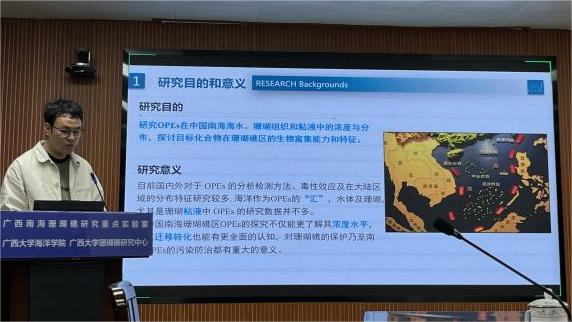 研究生口头报告分别由广西南海珊瑚礁研究重点实验室甘品、陈璇、罗兰、覃祖安、朱日广、杨凯、宾琪、陈英展、张旭哲、罗柱、张翊邦、黄思宇、李浩蓝、颜安南、夏荣林、胡俊杰、朱荣归和周超洋等研究生进行汇报