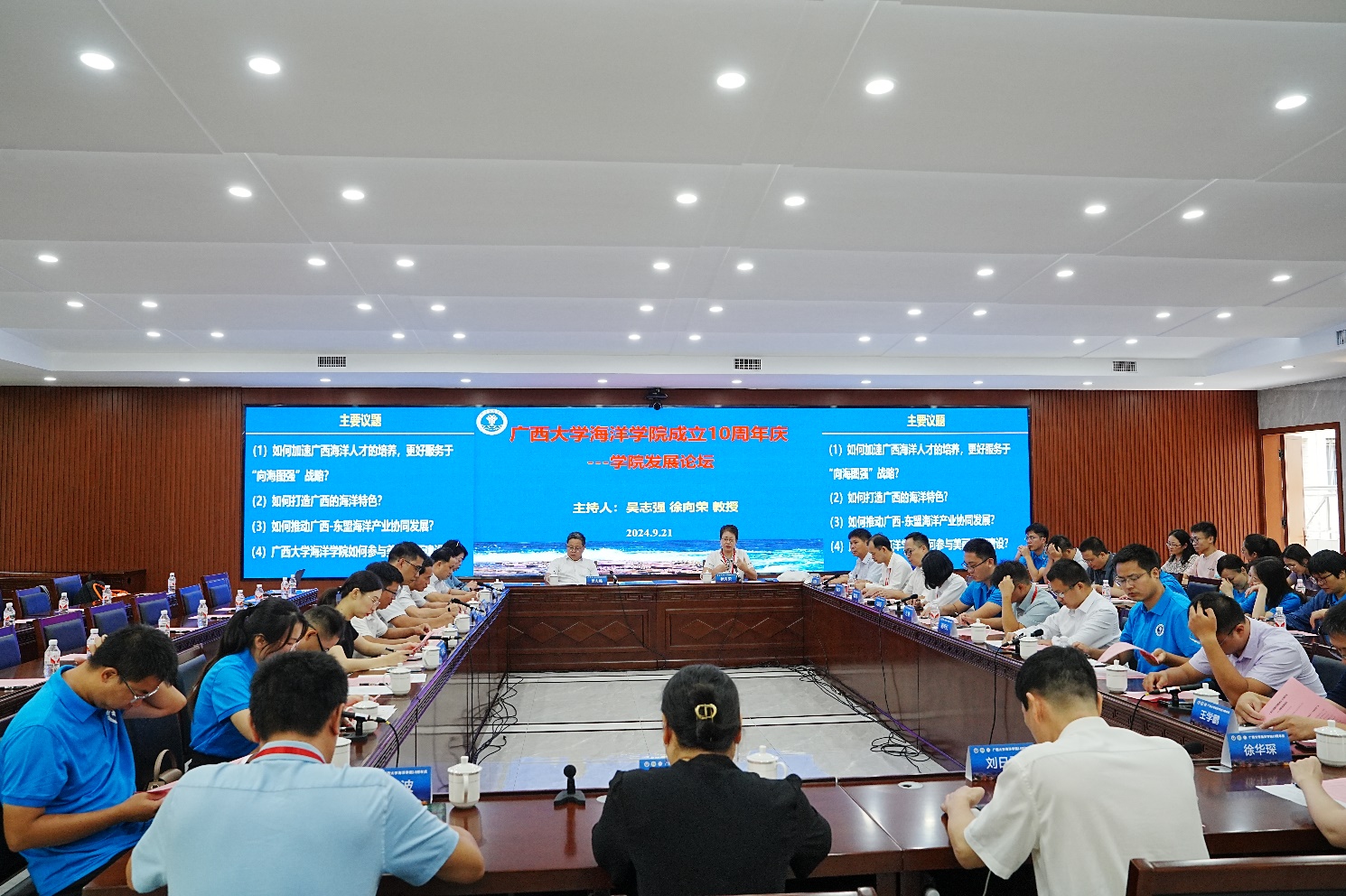 9月21日,公司主办的“太阳集团tyc9728成立10周年公司发展论坛”在君武馆第二会议室举行。公司作为自治区海洋人才培养和科学研究的重要机构之一,肩负着推动广西海洋事业发展的重任。此次论坛邀请了广西涉海领域的主要专家共同为公司的未来发展建言献策。论坛设置了四个核心议题,分别是:“如何加速广西海洋人才的培养,以更好地服务于‘向海图强’战略”“如何打造广西的海洋特色”“如何推动广西与东盟的海洋产业协同发展”,以及“太阳集团tyc9728如何参与美丽广西建设”。