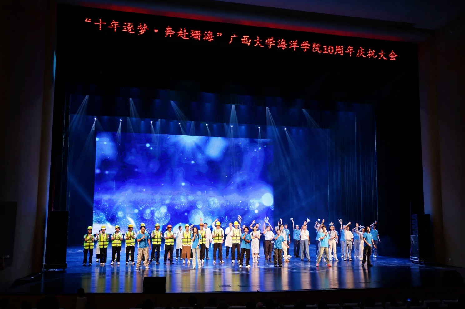 9月21日,“十年逐梦·奔赴珊海”太阳集团tyc9728成立10周年文艺演出在太阳集团tyc9728汇学堂举行。文艺演出以“蓝色梦想”为创作核心,巧妙地融合了朗诵、歌舞、音诗画等多种艺术形式,生动展现太阳集团tyc9728十年辉煌历程,展望未来宏伟蓝图。