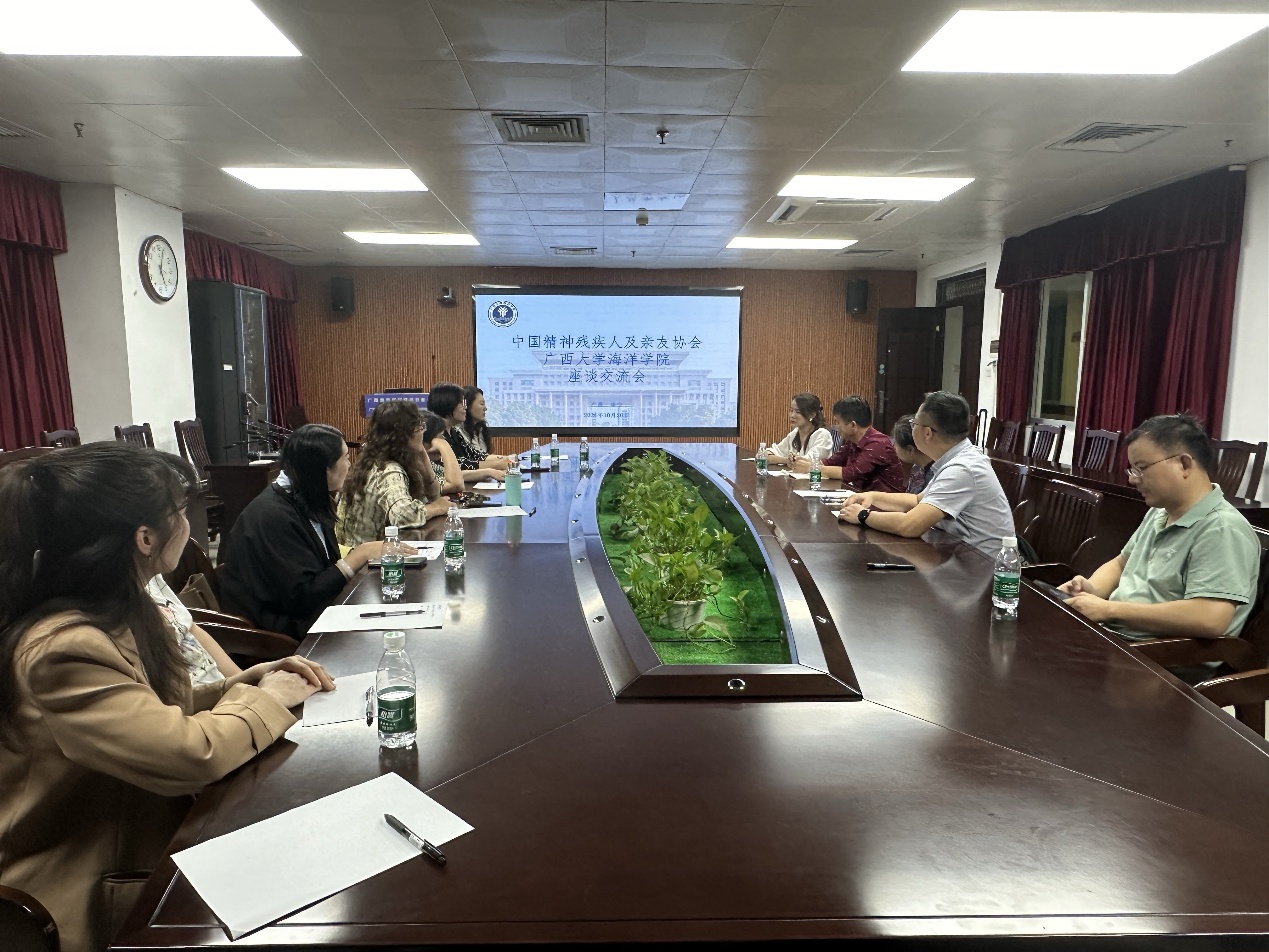 10月26日,中国精神残疾人及亲友协会(简称“中国精协”)主席赵新玲一行12人莅临公司,就海洋科学研学及科普基地合作进行深入考察调研。广西壮族自治区残疾人联合会(简称“广西残联”)兼职副理事长、第八届主席团副主席、广西幼儿师范高等专科公司特殊教育公司经理郭德华、广西残联第八届主席团副主席覃小田陪同调研。公司党委副书记、广西精神残疾人及亲友协会主席黄学勇热情接待了来访嘉宾。