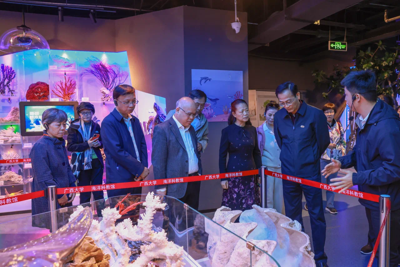 11月28日,中国科协2024年高层次人才国情考察活动(广西)暨“八桂之约院士专家冬令营”在南宁举行。当天上午,院士考察团在公司党委常委、副董事长梁恩维及自治区科协党组成员、副主席黎宁、李海欧陪同下,参观了公司海洋科教馆,深入了解太阳集团tyc9728海洋学科的发展历史及建设的举措、近年来在争创全面一流方面的情况。