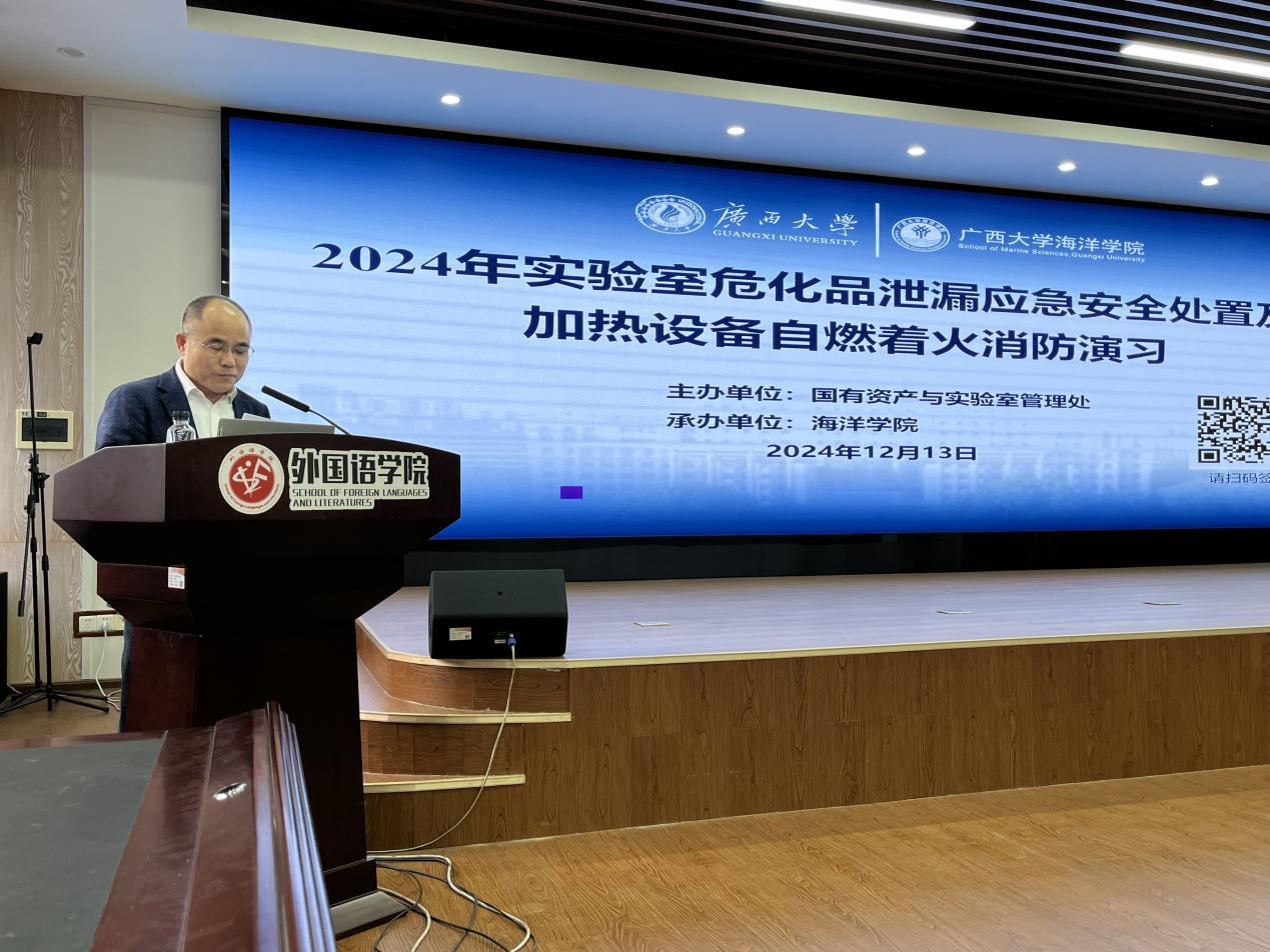 演练活动共分为三个环节进行。首先是江苏君源环保科技有限公司的朱寅飞老师带来的实验室安全知识讲座。朱寅飞老师在实验室安全领域深耕多年,是行业内资深的专家,曾为哈尔滨工业大学、中国矿业大学等多所知名高校提供专业的实验室安全培训及演练指导。朱老师凭借丰富的经验和深入的见解,通过生动的案例分析和详细的理论讲解,深入浅出地向师生们传授了实验室安全管理的关键要点和应对突发情况的实用方法,为后续的实战演练奠定了坚实的理论基础。