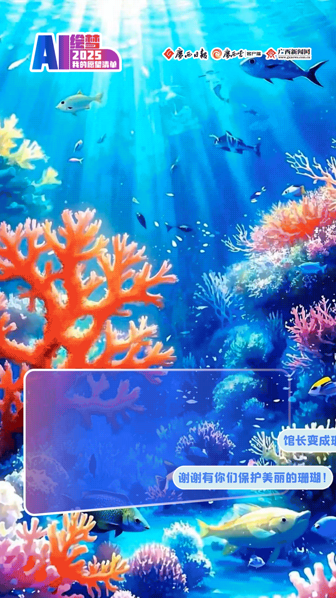 近日,广西云-广西日报特别推出“AI绘梦·2025愿望清单”系列报道,通过“AI+动漫手绘+弹幕”的形式呈现各行各业奋斗者朴实而真挚的新年愿望,共同绘就对广西和国家未来发展的殷切期许与美好祝愿。公司黄雯副教授入选其中。他的新年愿望是:“希望培育的珊瑚宝宝们茁壮成长,为海底居民缔造幸福乐园。”