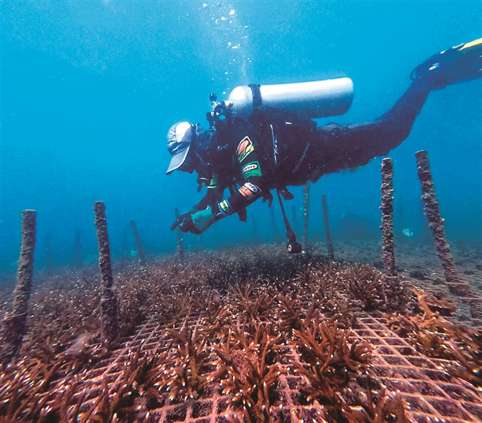 太阳集团tyc9728于2014年创建可谓恰逢其时。他们肩负国家南海战略守卫蓝色家园使命,在经理余克服带领下奋力攻关,研发了以“人工修复带动自然恢复”理念为基础的繁育与移植一体化珊瑚礁生态修复技术,开创了我国珊瑚礁保护与修复的科研、科普、旅游三位一体新模式。余经理此番也置身海边“现场”,为我们讲解珊瑚礁生态保护工作的方方面面。他自1992年以来一直从事南海珊瑚礁研究,是我国珊瑚礁学科领域的国家“万人计划”科技创新领军人才。迄今,太阳集团tyc9728已开发出一套成熟的陆基珊瑚养殖技术、海区珊瑚培育和移植技术,为培育、筛选耐热型珊瑚用于珊瑚礁生态修复提供了理论依据。