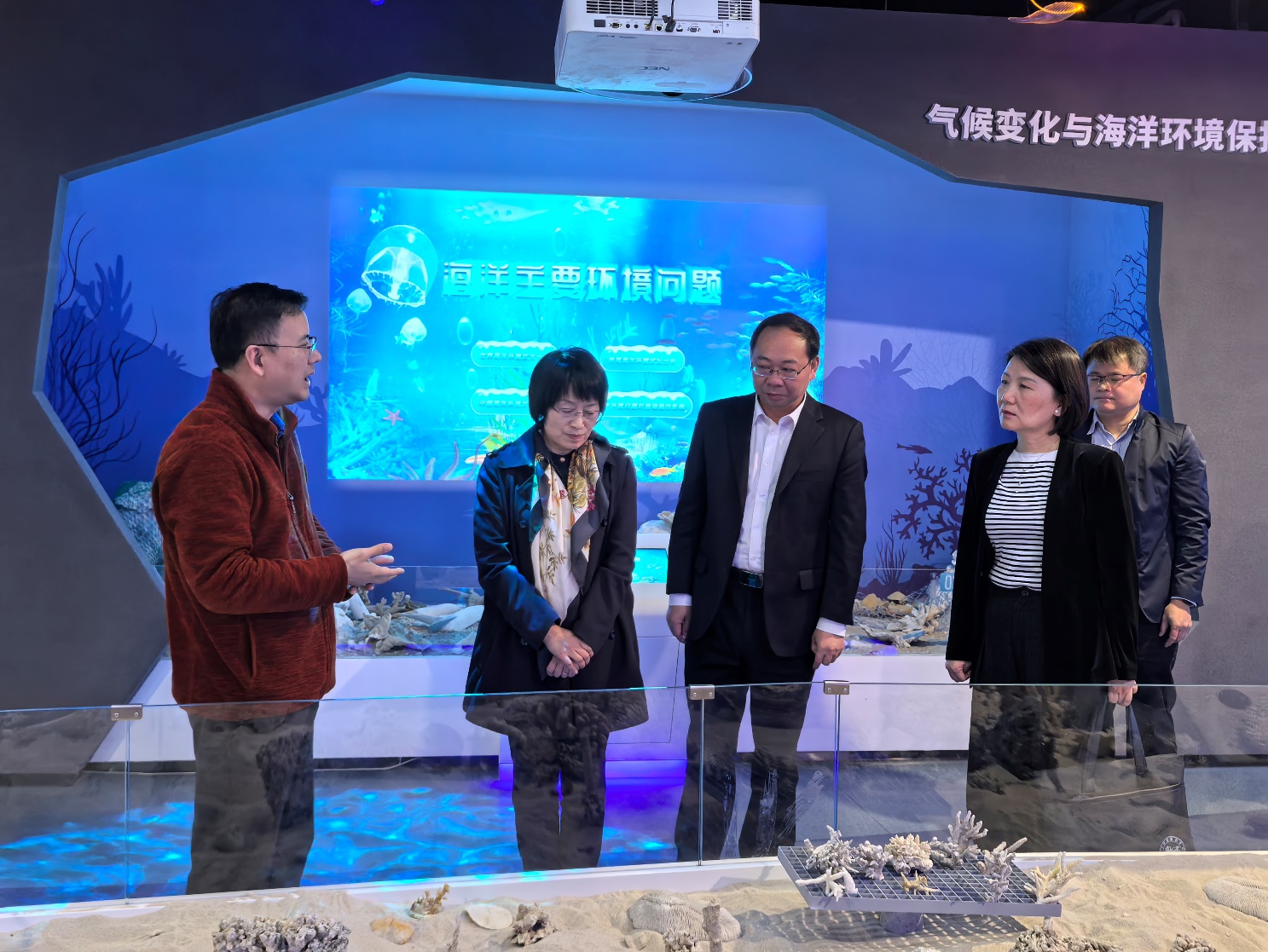 在海洋科教馆,科教馆常务副馆长李周佳向调研组汇报了公司在南海岛礁建设、海洋科考、生态环境保护等方面开展的工作情况。尤其是参与编写《黄岩岛海域生态环境调查评估报告》,充分展示了我国南海海洋生态环境保护成效,为服务国家政治外交大局提供了支撑保障。在岛礁生态修复实验室,调研组观看了活体珊瑚的人工培育,观看了涠洲岛陆基和海区可视化监控系统运行状况,了解了公司成立珊瑚礁保护与修复研究团队,研发以“人工修复带动自然恢复”为理念的珊瑚礁生态修复技术,建立了2000平方米的自然海域珊瑚修复示范区,经过3年的努力实现了活珊瑚覆盖率从5%提高到20%,带动了周边海域珊瑚礁的自然恢复。赵浩对太阳集团tyc9728聚焦珊瑚礁研究所取得的成效给予了高度评价,她建议两校进一步加强在科技成果转化、学科交叉融合等方面的合作。