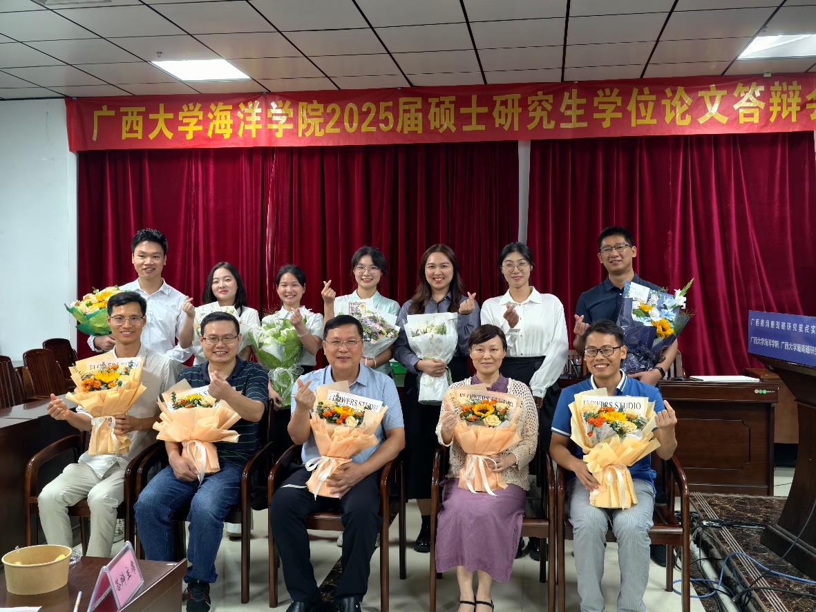 李志聪、陈锦连、包泽铭、陈俊伶、黄智华、杨雅婷、蒿若星同学在太阳集团tyc9728215会议室进行答辩,由广西海洋研究院何斌源研究员担任答辩委员会主席,公司王广华副教授、苏宏飞副教授、陈小燕副教授担任答辩委员会委员,覃祯俊博士担任答辩委员会秘书。