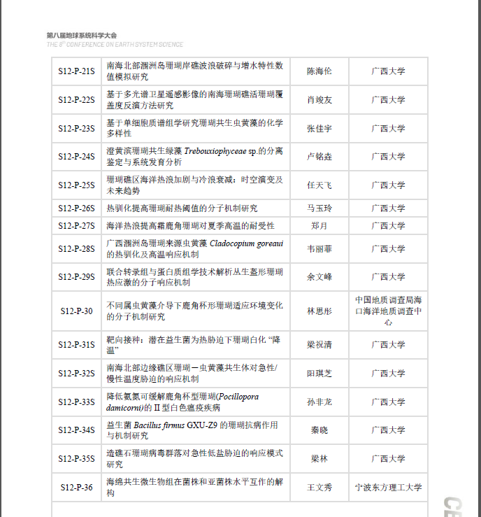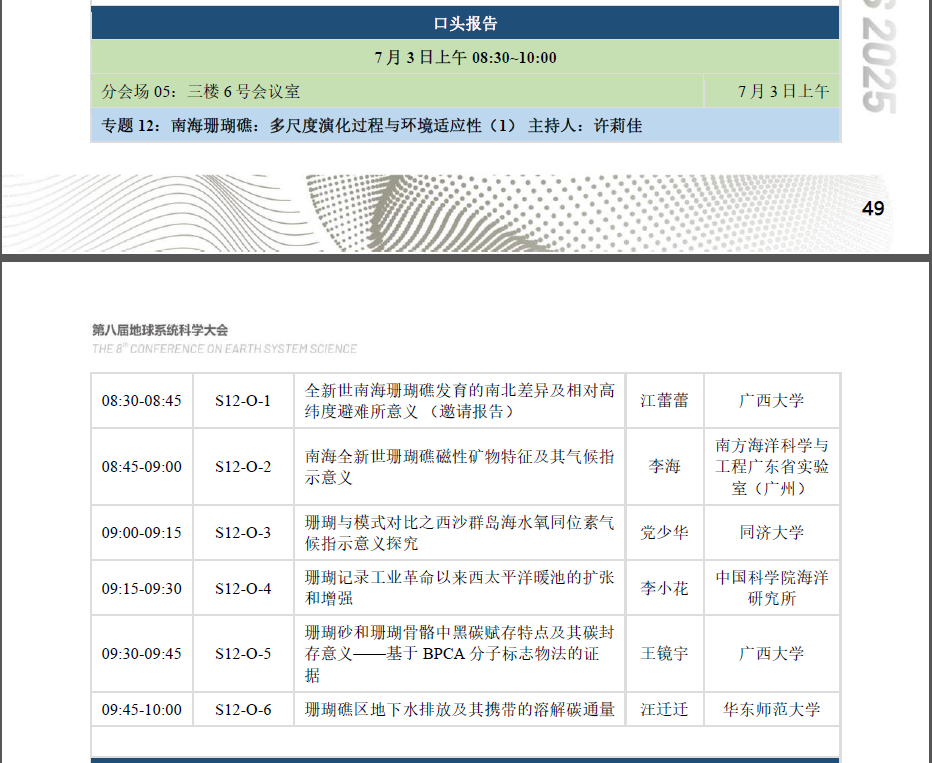 第八届地球系统科学大会“南海珊瑚礁”专题会场