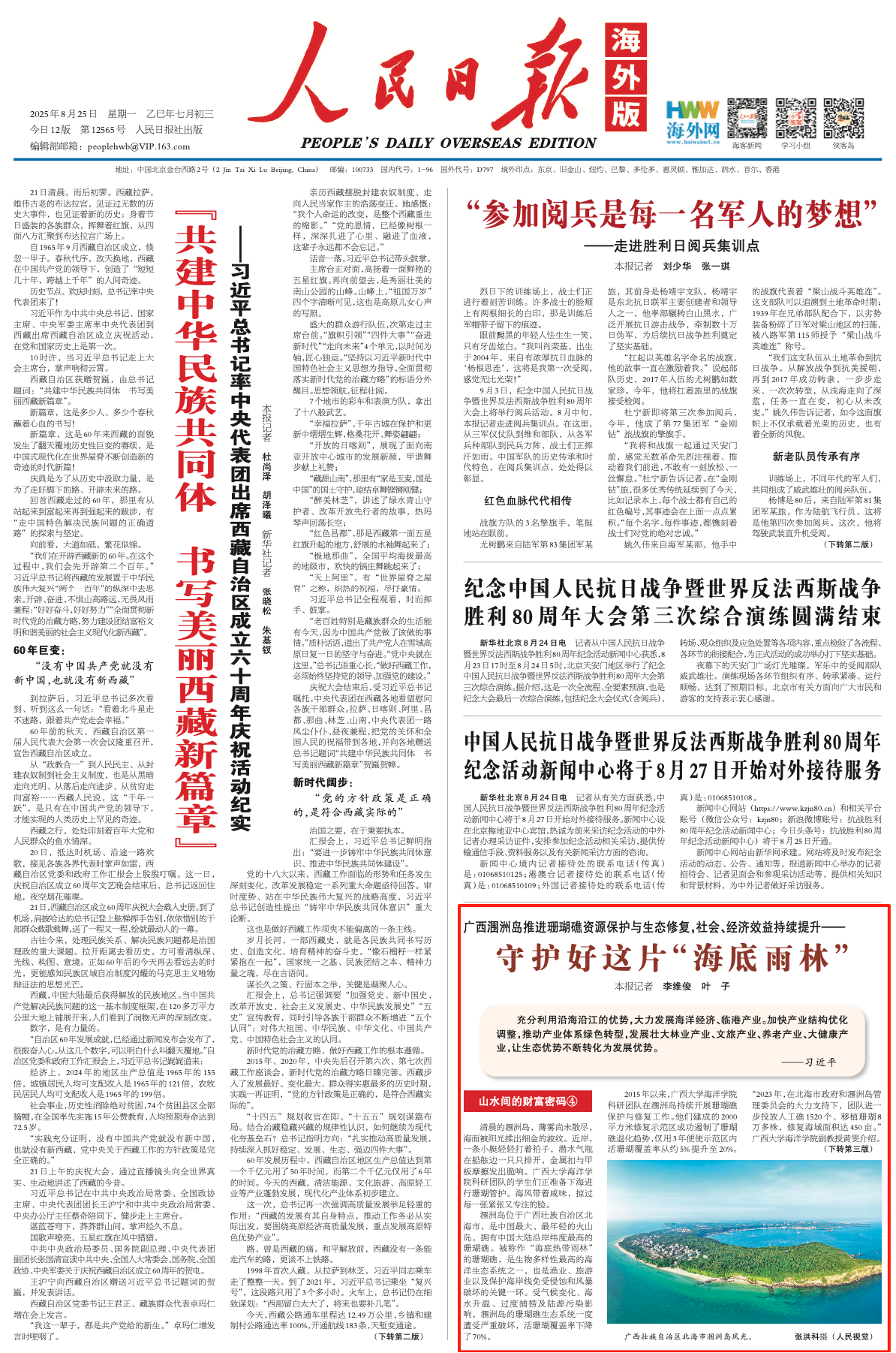 《人民日报海外版》(2025年8月25日第1版)