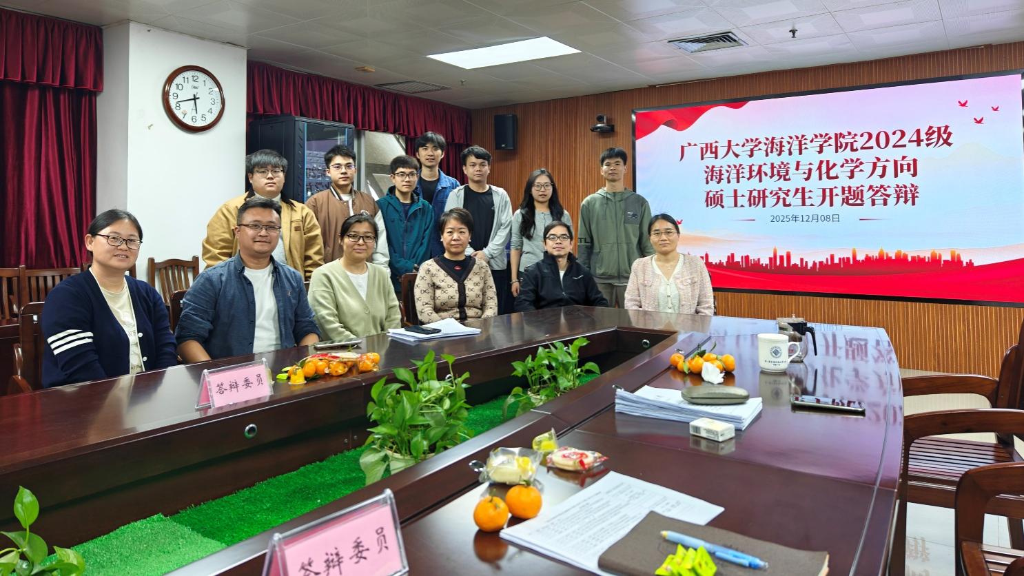 2025年12月8日,2024级海洋环境与化学方向硕士研究生开题答辩在公司1104会议室顺利举行。本次答辩分为上、下午两场进行,共计15名硕士研究生就各自的研究课题进行汇报,研究方向涵盖海洋环境监测、污染物行为与效应、珊瑚礁生态保护、海洋资源利用等多个前沿领域。