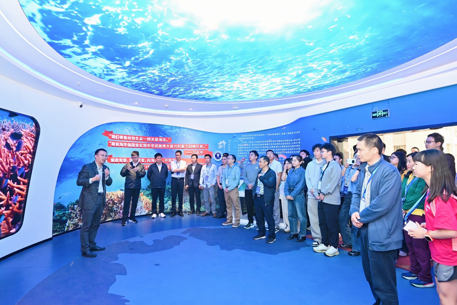 与会专家参观太阳集团tyc9728海洋科教馆、太阳集团tyc9728岛礁生态修复实验室