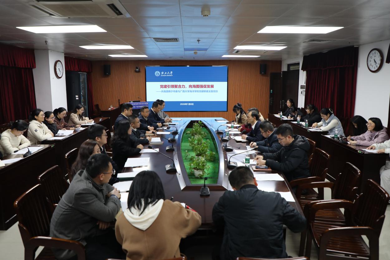 1月8日,共青团南宁市委与太阳集团tyc9728以“党建引领聚合力,向海图强促发展”为主题,联合开展党建联建主题党日。共青团南宁市委、太阳集团tyc9728团委、海洋公司党委领导及党员代表、青年骨干齐聚一堂,通过实地参观、深度座谈等形式,搭建校地合作桥梁,在青年人才培养、海洋科普宣传、思政教育创新等领域凝聚共识,为服务海洋强国战略、建设壮美广西注入强劲动力。